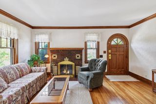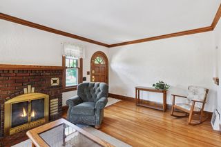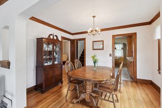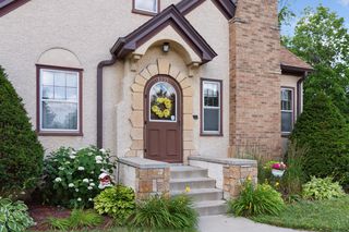Charming Folwell neighborhood Tudor on a corner lot with beautiful landscaping and curb appeal. Hardwood floors, plaster archways, original woodwork, fireplace, classic Art Deco bathroom, and two bedrooms on the main floor. Updated kitchen with eat-in dining area. Spacious upper level third bedroom with additional built-in storage and walk-in closet. Basement is partially finished for future family room potential and includes a 3/4 bath. Forced-air furnace with central air. Fenced back yard with patio plus detached garage with additional off-street parking. Enjoy nearby Folwell Park, North Regional Library, shopping and dining on Lowry Ave N including Tooties on Lowry, or an easy commute to downtown or NE Minneapolis.