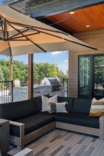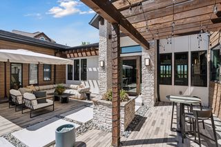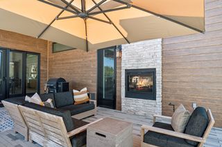 The home welcomes you with a gate at the private front entrance that encloses a cozy courtyard with lighted pergola. The front glass pivoting front door draws you into the family room with tall ceilings, floor to ceiling windows and modern touches throughout. A 3-season porch with it's own stacked stone fireplace opens fully onto the large backyard with sweeping mountain views. The kitchen is truly a dream with white oak cabinets, white quartz counters, a massive island with separate sink, FULGOR Milano dual fuel range, pot filler and industrial sized Dacor fridge and freezer. There is a built-in coffee maker, beverage drawer, lockable wine fridge and second dishwasher in the butler's pantry.