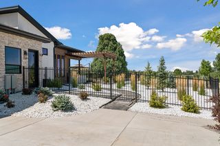 Down the hall there is an oversized laundry/craft room with access to an enclosed dog run. There are two additional bedrooms (one currently being used as a gym) with a Jack-n-Jill style bathroom and custom closets. A large home office with built-in cabinetry and access to the front courtyard finishes off the south wing of the house.