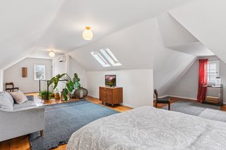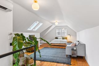 The upper level features a spacious third bedroom, filled with natural light by skylights, with extra space for relaxation or working from home.