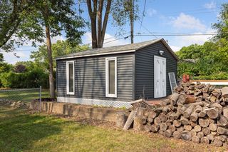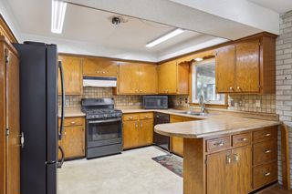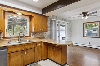 Solid, well-built home with all 3 bedrooms on the main level, spacious size rooms, lots of storage space, a gas fireplace, retro kitchen in good condition, detached garage is heated, large deck, patio, shed (16X16) is also heated. The roof is only 5 years old, leaf guard gutters, and fenced yard with .35 acre lot. This is a diamond in the rough waiting for your personal touch.