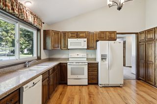 One-owner, main-level living home offers great potential on a treed corner lot in an established cul-de-sac neighborhood. Convenient layout features formal living and dining rooms off the foyer, and a large eat-in kitchen with pantry wall and window overlooking the backyard is open to a vaulted family room with wood beams on the ceiling, wood-burning fireplace with a full wall of brick surround, and access to a patio in the fenced-in backyard. Plus, a handy laundry room with sink and storage is located off the two-car attached/insulated garage, and three bedrooms include the vaulted master suite with a walk-in closet and full en suite with separate tile surround shower and tub, while the second full bath offers a double vanity and skylight. Also appreciate maintenance-free siding, updated Andersen windows, and newer mechanicals. Excellent location- close to schools and Woodbury amenities and option for membership in the Colby Lake Swim & Tennis Association down the street.