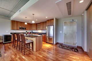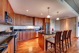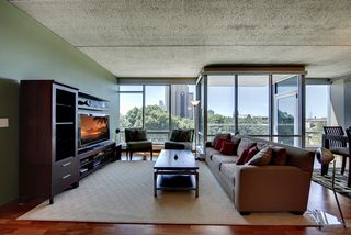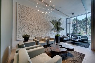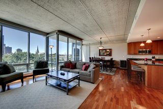 This gorgeous one bedroom condo features hardwood floors, a private balcony, floor-to-ceiling glass, and tasteful modern finishes. One heated underground parking stall and storage space are included.