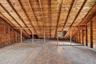 The expansive upstairs is unfinished with vaulted ceilings & large windows awaiting your ideas to complete into a full primary bedroom suite.