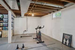 The lower level is also unfinished, but with high enough ceilings, this clean open space currently used as a gym & storage is ready for you to complete as your own.