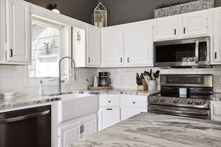 Welcome home! This beautiful home has a open concept main floor with LVP flooring, updated kitchen cabinets, kitchen farmsink, marble counter tops, vaulted ceilings and modern fixtures. The upper level features a large primary bedroom, updated full bathroom w/ subway tile shower and updated vanity. The third level has the 3rd bedroom, 3/4 bathroom and a living room that walks out to the yard. You will love the basement movie/media room perfect for entertaining. Fenced backyard and deck great on summer nights! Don't miss out on this cute home, it won't last long!