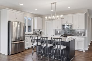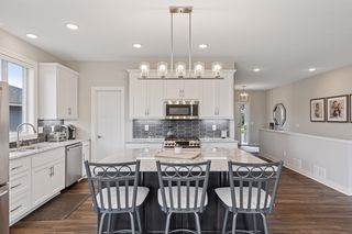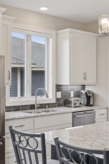 Welcome to effortless elegance and functional design in this beautifully crafted home by Cardinal Homebuilders. Designed with comfort and convenience in mind, this residence offers a sought-after, main level living layout that blends sophisticated style with everyday ease. Step through the welcoming foyer into a versatile front bedroom or office, paired with an adjacent powder room featuring textured wallpaper for a stylish touch. From there, a spacious, wide-open living area offers a seamless blend of kitchen, dining, and family room spaces, perfect for ease of living and entertaining. In the dazzling kitchen, Cambria countertops gleam amongst a trendy tile backsplash, white cabinetry, and stainless steel appliances, while the large center island provides ample workspace and a walk-in pantry offers that desired extra storage. The informal dining area flows into the cozy family room, where a floor-to-ceiling stone surround gas fireplace is flanked by rich built-in cabinetry, creating a warm and inviting focal point. Retreat to the main-level Owner’s suite and find a peaceful haven with its private ¾ en suite with tile surround shower and a spacious walk-in closet and bonus shoe closet, both with handy organization systems. Plus, the laundry/mudroom off the attached two-car attached garage adds functionality with thoughtful extras and ample space. As you make your way to the finished lower level, you’ll be pleased to find an expansive family/recreation room, complete with another stone surround gas fireplace, built-ins, and an impressive wet bar that’s ideal for hosting game and movie nights. In addition, two oversized bedrooms, each with walk-in closets, share a full bath and provide flexible space for guests, a home gym, office or hobby room; and don’t miss the generous storage space throughout. Outside, enjoy serene outdoor living on the covered front porch or the maintenance-free balcony deck in a backyard framed by mature pine trees for added privacy, not to mention an ideal location that’s just minutes from East Ridge High School, Woodbury amenities and major interstates.
