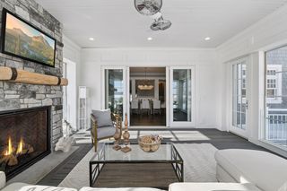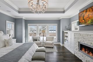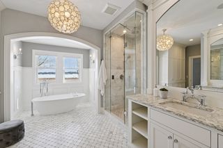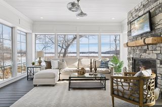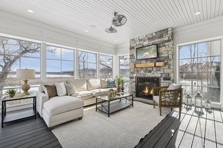 Shingle-style Lake Minnetonka home set on over an acre with 156 feet of lakeshore and three private dock slips in The Cove community. Crisp white interior with enameled millwork and custom finishes throughout. Panoramic views from nearly every room. Main level features include open great room design, gourmet kitchen with separate support space, private study and lakeside three+ season porch with fireplace overlooking the resort-style pool.