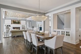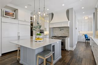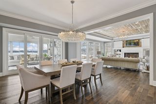 Walkout lower level includes a spacious family room with bar, additional bedroom and an oversized indoor multi-sport court. Entertain in style on the lakeside pool and patio with extensive outdoor kitchen, sun-filled gathering areas, beautiful landscaping and panoramic views of the water.