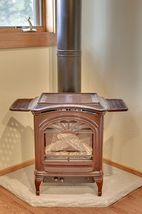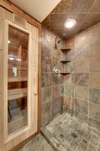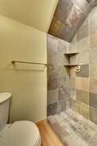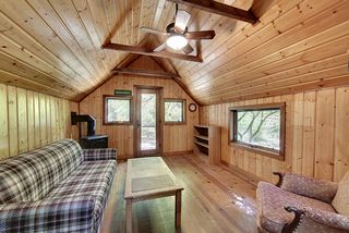 The gabled garage with loft studio space features a large open room, kitchenette and 3/4 bathroom. This is the perfect living quarters for anyone looking to reduce their carbon footprint. High efficiency natural gas stoves heat both buildings. The 2+ car garage offers both heated and cooled space in addition to running water and drains.