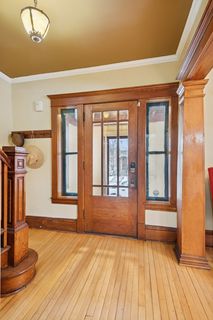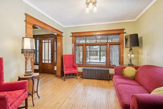 Welcome to this timeless 1915 two-story treasure in the heart of the Harrison neighborhood of Minneapolis. From the moment you step inside, you’ll be captivated by the stunning original woodwork, gleaming hardwood floors, vintage lighting, and an elegant open staircase that anchors the home with classic charm. Architectural highlights abound, including a built-in buffet, beautiful bay window, and exquisite leaded glass details that showcase the craftsmanship of a bygone era. The retro-inspired kitchen is both stylish and functional, featuring a professionally restored Caloric Compacto gas stove, vintage metal cabinetry, and a brand-new vinyl floor with a retro vibe. A convenient main-floor half bath adds modern practicality. Upstairs, you’ll find three bedrooms, a walk-in closet, and a full bath complete with a clawfoot tub and shower — the perfect place to unwind. Enjoy morning coffee or evening breezes from not one, but three porches: front, back, and a rare second-floor rear porch. The unfinished basement is clean, freshly painted, and has decent ceiling height — ideal for storage or your dream workshop. A walk-up attic provides even more storage flexibility. Outside, the oversized and uniquely shaped lot is filled with dozens of gorgeous hosta and native flowers yet offers endless possibilities — whether you’re an avid gardener, need room to play, or want space for pets to roam. A two-stall detached garage completes the package. Updates to note include a new roof in August, 2022, a professionally serviced boiler in 2025, and and many updated windows throughout the home. Enjoy easy access to local favorites like Milda's Cafe, the vibrant energy of downtown Minneapolis, convenient routes via Hwy 55 and I-94, and the beloved shops and dining of the nearby Bryn Mawr neighborhood.
