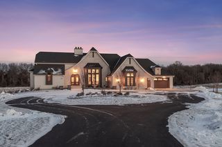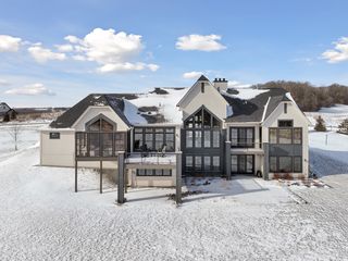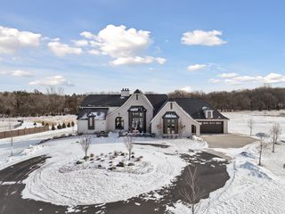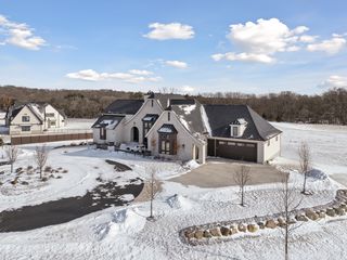 Experience refined luxury in this estate-level residence- a custom-designed walkout rambler and former model home by TJB Homes built with superior craftsmanship and extensive upgrades throughout. Nestled on an exquisite, five-acre lot in the prestigious Afton Creek Preserve, this property offers peaceful country living, yet close proximity to nearby cities. The bright and airy, wide-open layout is ideal for main-level living and showcases sensational architectural details throughout. In the great room, a vaulted ceiling is adorned with majestic beams, while a dramatic wall of A-framed windows captures serene views of open fields and trees, and a floor-to-ceiling, stone gas fireplace anchors the space with warmth and timeless sophistication. The adjacent gourmet kitchen is a true showpiece designed to gather and impress with glowing accent lighting against crisp white cabinetry and quartz countertops, plus a deluxe butler’s pantry and serving bar next to a beautiful dining area create the perfect setting for memorable meals and celebrations. The Owner’s suite is a private oasis featuring more of those tranquil views, a spa-inspired en suite with soaking tub and illuminated walk-in shower, and your dream closet with access to a walk-through laundry room. Further, a vaulted, three-season porch with gas fireplace and deck access, an exquisite office with private balcony, and a fully equipped mudroom elevate the home with purposeful design and exceptional livability. Extending this sense of lifestyle-focused luxury, the walkout lower level delivers a resort-like experience that’s equally suited for lively entertaining and relaxed evenings at home. A richly detailed family room with a custom gas fireplace flows seamlessly into a stunning wet bar with wine cellar that’s ideal for hosting at any scale; and a dedicated golf simulator adds a unique lifestyle amenity, not to mention two well-appointed bedrooms and a stylish ¾ bath that provide comfortable accommodations for guests. Outdoors, enjoy front and back patios with endless wildlife sightings in the sweeping yard, a heated four-car garage with ample storage, and access to private walking trails. Just ten minutes from Afton State Park and Afton Alps, this home offers exceptional flow, comfort, and lifestyle in a truly remarkable setting.
