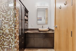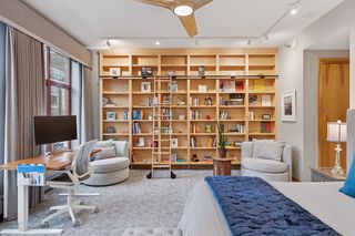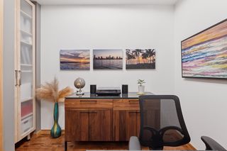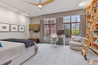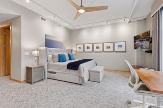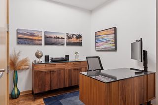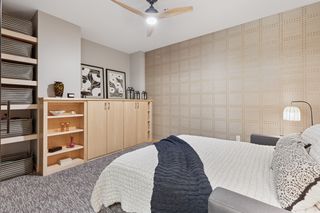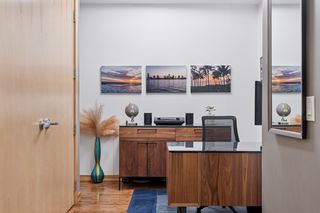 This 2-bedroom + den, 2.5-bath home features a spacious owner’s suite with a fully outfitted walk-in closet, a luxurious full bath, a custom bookcase wall, and conveniently located in-suite laundry. The second bedroom includes an adjacent 3/4 bath and a generous space for guests or flex use. A main-level den offers versatility as a home office or additional guest area. Enjoy smart living with fully updated electrical and energy-efficient LED lighting throughout. Step outside to your large private patio with gas and water hookups—perfect for seamless indoor-outdoor living.