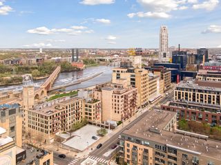Community amenities include a rooftop deck with breathtaking views of the Stone Arch Bridge and Mississippi River, a fitness center, community room, guest parking, one garage stall, and additional storage.
