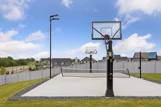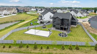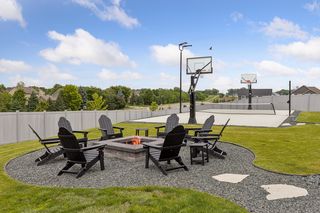 Enjoy hours of entertainment in the expansive, fully-fenced backyard, including a full sport court with outdoor lighting—perfect for basketball, pickleball, and more. Then unwind by the firepit or entertain on the spacious patio. Additional highlights: patio wired for electric/gas, additional washer/dryer hookup in basement, built-in speakers with surround sound & a heated garage.