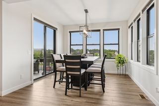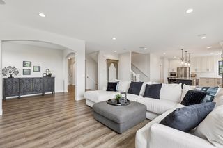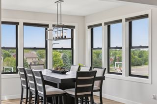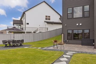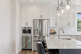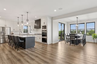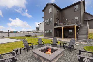 From the moment you enter, you’ll notice upscale finishes and thoughtful design—9-foot ceilings, wide hallways, and expansive windows that flood the main floor with natural light. Open-concept layout seamlessly connects the living, dining, and kitchen areas. Cozy up by the fireplace in the living room or enjoy meals in the sun filled breakfast nook. The chef’s kitchen features stylish backsplash, stainless steel appliances (bonus: built-in beverage fridge & Bosch coffee maker) and a spacious center island—perfect for meal prep, casual dining, or entertaining guests. The main level flex room is perfect for a home office or playroom.