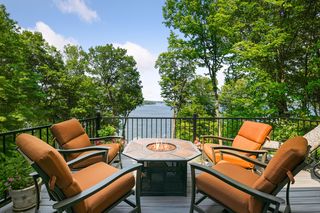 A private winding drive through towering maples leads to this lodge-style lake home sited on over an acre of land and 100+ feet of prime shoreline. Dramatic great room features beamed ceiling, stone fireplace and wall of windows with big water views of Smithtown Bay and several islands. Center-island kitchen featuring Viking, Wolf, Bosch and separate support/prep area. Main level owner’s suite with luxury bath and walk-in closets.