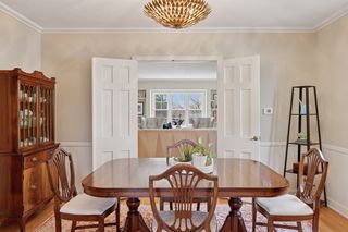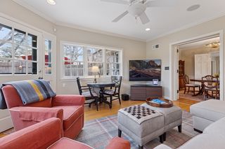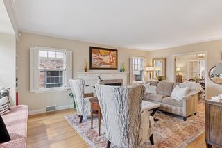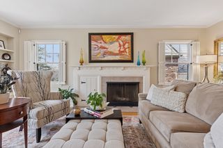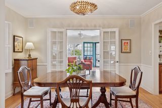 **Attention to detail and quality** are evident throughout the home, from the gleaming hardwood floors to the exquisite French doors and custom cove moldings. Enjoy the modern conveniences afforded by updated lighting and newer windows, while soaking in the nostalgia of classic elements like the cozy fireplace and charming window seat—ideal for curling up with your favorite book.