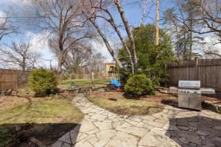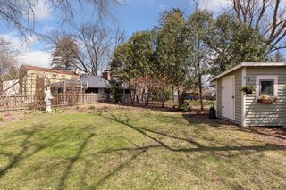 The meticulously maintained yard is a garden lover's paradise! You’ll be greeted by a vibrant front boulevard garden bursting with seasonal blooms like iris, sedum, tulips, daffodils, and hyacinth. A stunning hillside reveals beautiful rose bushes and a vine arch that leads to a charming flagstone patio, inviting you to relax outdoors. The custom-designed cedar garden shed provides additional charm and utility to your outdoor space.