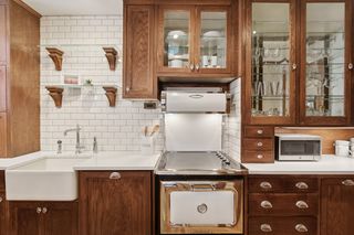 This beautifully renovated one-bedroom apartment in the historic 2615 Park Avenue Cooperative combines modern upgrades with period charm. The updated kitchen features newer appliances, a period-inspired range, built-in refrigerator, custom cabinetry, tiled backsplash, and a cleverly designed kitchen island that can be removed or repositioned as needed. The spacious bedroom offers a large walk-in closet with custom shelving, while the bathroom retains its original tub, fixtures, cabinetry, and tile, all expertly restored.