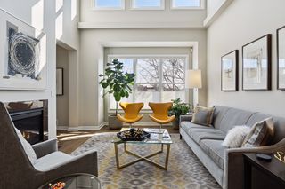 Renovated 3-bedroom brownstone featuring contemporary upgrades and a private rooftop boasting stunning downtown Minneapolis views. The open layout is perfect for entertaining, with a two-story great room that streams sunlight to both floors throughout the day, a beautifully remodeled kitchen, a sunlit breakfast corner, and an elegant dining room spacious enough for large dinner parties. The main floor includes a convenient owner's suite (or guest suite if you choose to make your primary upstairs), along with a powder room. A spacious family room overlooks the great room and is conveniently located adjacent to the upper floor bedrooms and bathroom. This city home provides 3 heated side by side parking spaces right out your back door, and residents can enjoy Grant Park amenities like an indoor pool, spa, fitness center, and a nearby dog park. This brownstone truly offers a complete city living experience!