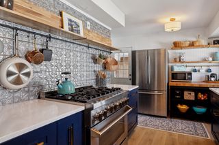 This home is move in ready with a beautifully update kitchen featuring a farmhouse style sink, 6 burner gas cooktop (Cosmo) with a convection oven and a very functional butcher block counter in addition to Quartz counter tops.