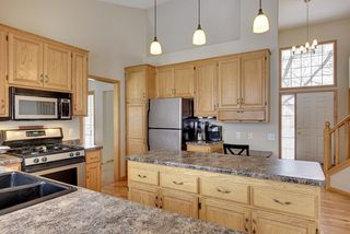 Open floor plan-Large kitchen w/ island-main floor bedroom could be used as office-3 BR on upper level full master suite-All living facilities on 1-level-Lower level finished with family room, bedroom & bath-private back yard on Crystal Lake Golf Course.