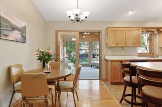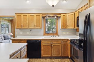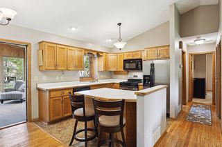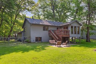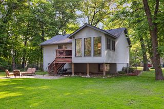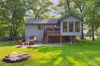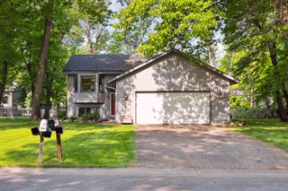 Welcome to this cozy split entry home nestled on a wooded lot. Deeded access to Clear Lake, conveniently located near restaurants, shopping and Forest Lake! You will enjoy the four season porch, perfect for unwinding after a long day! Bright, open upper level with vaulted ceilings, hardwood floors, freshly painted upper level, primary bedroom walk-in closet, pass-thru upper floor bathroom, and much more. The finished lower level has knotty pine ceilings and wood finishes, a spacious living room area, the 3rd bedroom and a full bathroom. Don't forget to check out the large, fully fenced backyard, brick patio and deck area. This one won't last long!