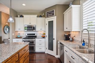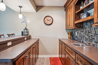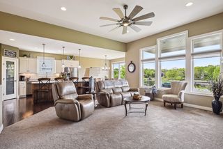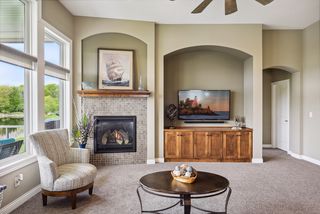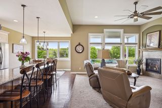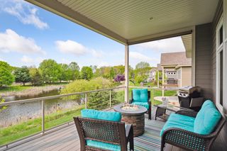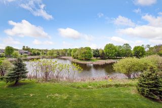 This custom-built detached rambler TH has it all! Former Gorham model. Open main floor plan with natural pond view, 10 foot ceilings with southern exposure & wall of windows fill with natural light. Crisp white enamled kitchen cabinetry w/ alder island & granite countertops & gleaming wood floor. LR features fireplace, arch details & alder built-in. Covered deck off DR great for entertaining. Spacious main floor primary bedroom w/luxury ensuite bath- soaking tub, walk-in shower, dual vanity, walk-in closet & convenient access to laundry. Lower level offers custom alder wet bar, stone-faced fireplace, walk-out to patio, 2 large bedrooms and 3/4 bath + large storage area. No mow-No snow turnkey living. Sought after Aspen Woods location.. enjoy all the amenities The Lakes has to offer including swimming beach, recreational parks, trails & playspace, nearby shops & eateries.