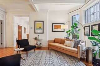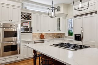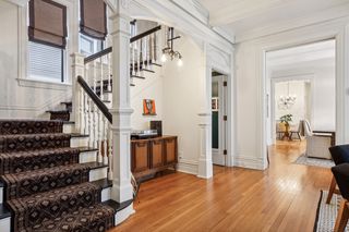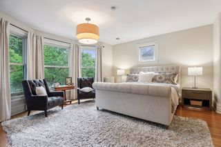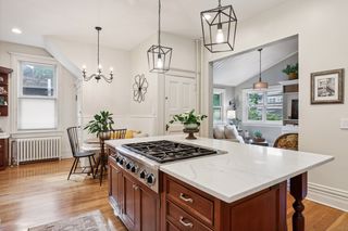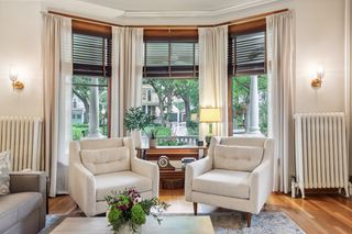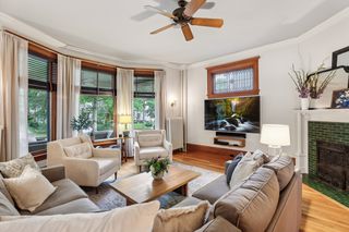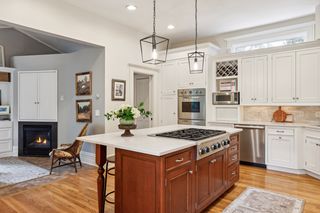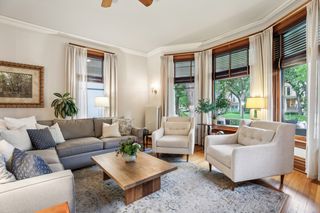 Quintessential Victorian in Crocus Hill, known for its convenient yet private location and charming historic residences. Meticulously maintained with gracious front porch, back patio, and rare three car garage. The home's original features of hardwood floors, large windows, high ceiling, and detailed woodwork add elegance and charm to the many updated living spaces on every floor. A bright and decidedly livable main floor features a parlor, updated open concept kitchen, and an adorable den with a gas fireplace. You'll also find a large main floor family room, formal dining, powder bath and large pantry. Second floor features a south facing primary bedroom with en-suite spa bathroom with steam shower, two guest bedrooms, full guest bath with jetted tub, and laundry. The versatile third floor with vintage full bath awaits the student home for the summer or amazing kids' playroom. New roof. Super clean basement has full working shop. Ideal location steps from Triangle Park.