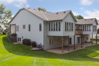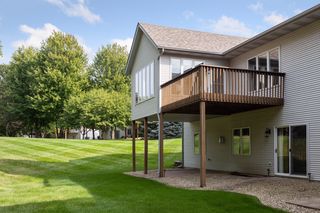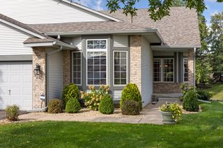 Well-maintained and move-in ready, this conveniently located twin home offers comfortable main level living and many desirable features. Generous floor plan feels incredibly open and spacious with vaulted ceilings in almost every room, including a sizable kitchen with center island, formal and informal dining, large living room, sunroom with access to a balcony deck, and Owner’s suite with walk-in closet and full en suite with separate tub and shower, in addition to an office/den with closet, ½ bath, and laundry/mud room off the two-car attached garage. And in the walkout basement, enjoy a huge recreation room featuring a floor-to-ceiling, brick surround gas fireplace and wet bar for entertaining, plus two bedrooms (one with a walk-in closet), ¾ walk-thru bath, and multiple storage rooms, while the walkout leads to a covered patio overlooking the private backyard. Excellent location with easy access to I-94 and I-494 and within walking distance to Evergreen West Park, shopping, and dining.