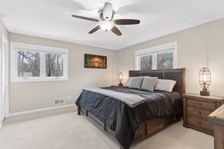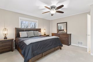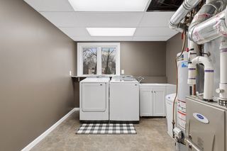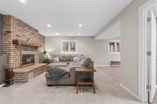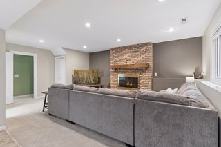 The lower level provides excellent additional living space with a generous family room anchored by a second fireplace — perfect for cozy evenings or gatherings. This level also includes two additional bedrooms, a three-quarter bath, a finished laundry room, and walk-out access to the patio.