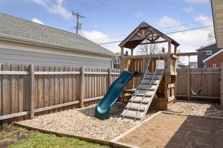 Pretty soon, the backyard will be bursting with lilacs in bloom, and the sweet window boxes will welcome guests as they step into this warm and inviting home. Special features include hardwood floors, original cove ceilings in the living and dining rooms, a glass front display cabinet, and a stone fireplace. The main floor includes two bedrooms with access to the beautifully landscaped backyard. The lower level features a finished bedroom/office, a family room, both with egress windows, and a ¾ bath. The upper level offers a finished bedroom with sufficient headroom and closet space.
