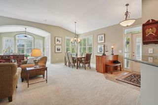 Discover the perfect blend of luxury and comfort in this turnkey, immaculately maintained Charles Cudd twin home. The pristine woodwork, custom cabinetry, and hardwood floors throughout the home, all in a light, stunning cherrywood, add warmth and elegance to the home's bright, open spaces. The main level features a beautiful sitting room with plantation shutters, leading to an oversized deck with serene pond views. A gas fireplace with a custom cherrywood surround enhances this warm, cozy living area. The primary bedroom boasts a walk-in closet and an en-suite bathroom with a jetted tub and walk-in shower for your spa-like relaxation. The main level family room includes a dry bar and exquisite built-ins, while the lower level offers an entertainment room with a full wet bar an exercise room, additional bedroom and ¾ bath. Located on a quiet street in the highly sought-after Medina Highlands neighborhood close to schools, parks, shopping, and freeway access, this home provides both convenience and tranquility. Don’t miss your chance – schedule a tour today and experience the exceptional quality and charm this home has to offer!