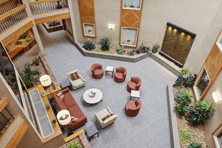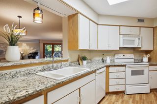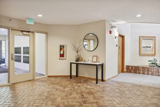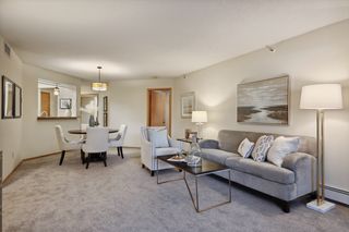 Affordable luxury condominium - walk to Glen Lake for dining (4 restaurants plus a brewery), Lunds/Byerly's, post office and more. Dramatic, sunny 3 story skylit atrium is sure to please! Lovely main floor 2 bedroom, 2 bath layout with open living/dining/kitchen, fireplace and in-unit laundry. Brand new carpeting. Enjoy the convenience of easy in-out through your patio door to ground level. Make sure to see the wonderful association amenities through connecting hallways including the big party room with full kitchen and huge deck area, updated indoor pool/hot tub with his & hers sauna & changing rooms, exercise room & guest room. Underground heated parking.