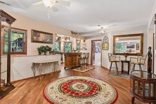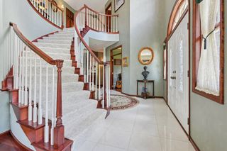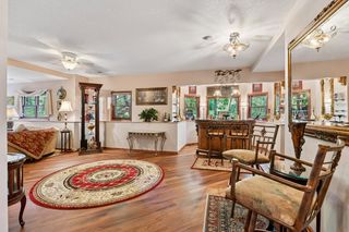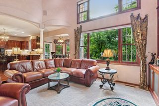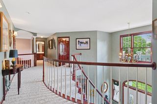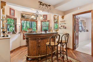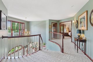 A striking curved staircase takes you to the upstairs with three bedrooms include a spacious primary suite and bath. 2 additional bedrooms and full bath connected by a catwalk overlooking the lower level living room. The finished lower level extends the home’s versatility with a family room, bar area, and an additional bedroom.