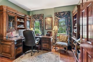 The main level features beautiful hardwood floors, a vaulted living room with cozy gas-burning fireplace, and an executive office for today’s work-from-home lifestyle. The kitchen offers granite countertops, a large center island, pantry, and both formal and informal dining options—ideal for entertaining and everyday living.