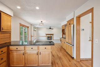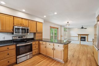 The main floor features beautiful hardwood floors; Vaulted living and dining room; Kitchen opens to the informal dining and family room with a gas fireplace.