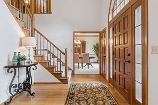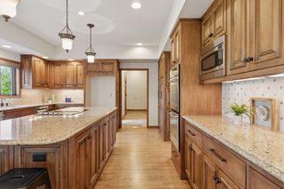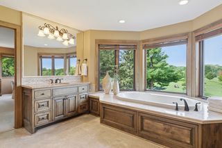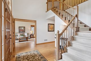 Situated on the 1st fairway of Prestwick Golf Club in the highly sought-after Wedgewood Estates neighborhood, this custom-built luxury home combines timeless craftsmanship with high-end upgrades and spectacular golf course views. Located on an undisturbed street, the property offers refined living with quality materials, exceptional detail, and a thoughtfully designed floor plan. A grand, two-story foyer with an open staircase welcomes you inside to adjacent formal living and dining rooms, providing that extra desired space for entertaining, while the great room impresses with a floor-to-ceiling, brick surround gas fireplace and built-in serving bars adorned with custom millwork. As you make your way into the gourmet kitchen, you’ll find walls of custom cabinetry accompanied by a sea of quartz countertops and a large center island for all the prep space you could ask for, not to mention an informal dining nook that lends access to a vaulted, four-season porch wrapped in wood paneling and windows, offering year-round enjoyment. And in the nearby mudroom off the three-car heated garage, two closets and a pantry are ideal for organizing the daily mess, and an ornate powder room adds a touch of elegance. Upstairs, the expansive Owner’s suite is a comfortable retreat, featuring French doors and a spa-like en suite updated with all the expected luxuries, including an enviable walk-in closet outfitted with a high-end organization system. Plus, two additional bedrooms share a full bath, and a fully equipped laundry room makes chores feel indulgent. Finally, the walkout lower level is most favorable for hosting game night with a spacious family room that presents a second brick surround gas fireplace and wet bar with seating next to a billiards area, while a designated office/exercise room, guest bedroom, ¾ bath, and lots of storage satisfy your remaining wish list items. Also enjoy exquisite outdoor living on the large, maintenance-free balcony deck or patio below that overlook the beautiful backyard and more of those breathtaking golf course views. Just a short golf cart ride to ‘The Wick Pub & Grill and close to East Ridge schools and all that Woodbury has to offer, this is luxury living at its finest.