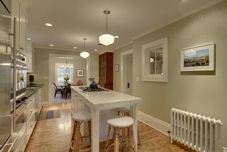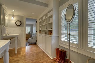 Upstairs are four bedrooms on one level including a full bath, a private light filled master suite with a beautifully designed bath and dressing room. The excellent attic storage is accessible via a staircase.