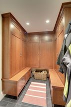 A mudroom with custom built-in cabinets, a finished laundry room, and the 2+ attached garage are located on the lower level.