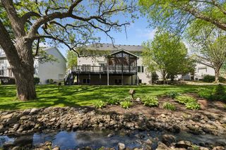Nestled in a storybook setting with a tranquil creek and towering mature trees gracing the backyard, this lovely home is a rare find on a coveted double cul-de-sac lot. The peaceful, low-traffic street offers privacy and serenity while keeping you close to the conveniences of Woodbury, East Ridge schools, and easy access to I-494. Inside, you're welcomed by rich hardwood floors that flow through the open concept, where one-of-a-kind views of the creek create a warm, inviting ambiance, and plantation shutters add timeless charm and filtered light throughout. The great room boasts a gas fireplace framed by a gorgeous board and batten wall, while large windows bring the outdoors in; and in the kitchen, white cabinetry surrounds striking black granite counters and a mosaic tile backsplash, plus a peninsula with seating connects seamlessly to the informal dining area. There is also a flexible formal dining or sitting room conveniently off the kitchen that provides direct access to the sizable, maintenance-free deck and into an enviable, screened-in porch with a vaulted wood ceiling- all of which lend undoubtedly, the best views of the creek! Further, a powder room, functional laundry/mud room off the three-car attached garage, and private office with French doors, walls of built-ins, and a charming bay window are desirable, main-level amenities. Upstairs, be pleased to find four bedrooms and two full baths, including a generous Owner’s suite that features a tray-vault ceiling, sitting area, massive walk-in closet, and spa-like en suite with a double vanity and separate whirlpool tub and shower. And if you’re looking for more space to hangout and entertain, the cozy lower level is perfect for movie and game night with its stacked stone gas fireplace and built-in entertainment center in the family room. Plus, a bonus workstation is great for hobbies or an additional office, and the fifth bedroom and ¾ tiled bath are ideal for guests- truly a home where comfort, thoughtful design, and nature blend seamlessly!