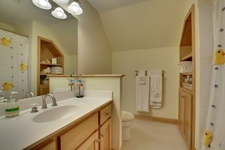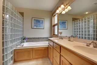 Master bedroom is on the main level with a full bath that has tiled floors, wall trim and shower walls. There is an 8-foot high oversized shower and separate Jacuzzi in the master bath. Plenty of custom cabinets keep linens and other items handy and neatly organized.