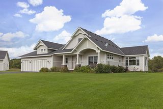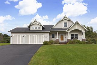 Why settle for a room with a view when you can enjoy breathtaking scenery no matter which direction you look. If you enjoy the feeling of being in the great outdoors you don’t have to sacrifice your love of luxury and elegance when you call 838 Prairie Meadows Drive in Hudson, WI your home. Set amongst the azure blue sky with puffs of snow white clouds the greenery creates a natural setting for this fully custom one and a half story bungalow home. Designed in the arts and crafts style it is the perfect blend of casual living combined with the finer things in life.