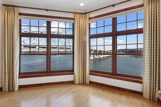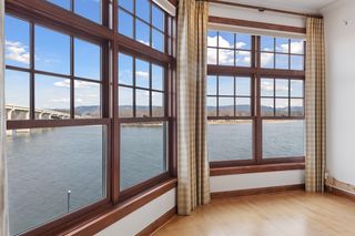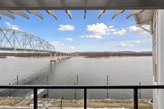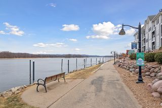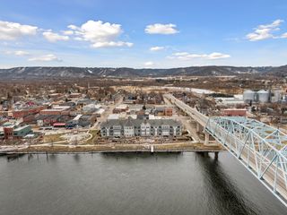 Perched on the top floor with sweeping, unobstructed views of the Mississippi River, this stunning 2-bedroom, 2-bath condo in the heart of Wabasha offers a rare blend of luxury, comfort, and natural beauty—just steps from the National Eagle Center. Floor-to-ceiling windows and 10-foot ceilings flood the open-concept living space with natural light, perfectly framing panoramic river views. The gourmet kitchen features a high-end Sub-Zero refrigerator and premium appliances, solid-surface countertops, and rich cherry custom built-ins that provide both elegance and storage. A cozy gas fireplace anchors the living area, creating a warm and inviting space to relax and entertain. Wake up to river views in the spacious primary suite, which offers direct access to the private balcony—ideal for morning coffee or al fresco dining in the evenings. The ensuite bath and generous closet space enhance the retreat-like feel. A second bedroom and full bath make the layout perfect for guests, a home office, or both. Two dedicated parking spaces in the underground heated garage add everyday convenience and peace of mind. Step onto the balcony and experience the riverfront lifestyle: watch bald eagles nesting across the water, soaring overhead, and diving for fish—right from home. With its premier top-floor location, upscale finishes, secure underground parking, and unparalleled vantage point on the Mississippi, this condo is an exceptional opportunity—whether you’re seeking a full-time residence, a weekend getaway, or the perfect snowbird home.