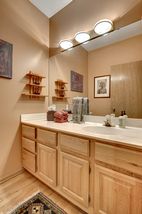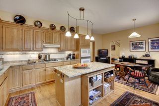 A light-filled end unit with three spacious bedrooms including an upper level master suite with a walk through closet and private bath with a double vanity, separate soaking tub and walk-in shower. A guest bedroom, a den/office with gas fireplace and built-in bookshelves, and full guest bath are located on the upper level as well.