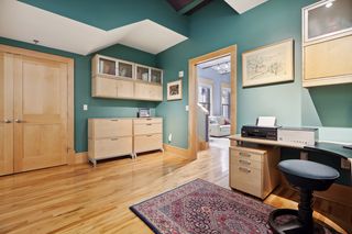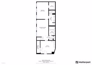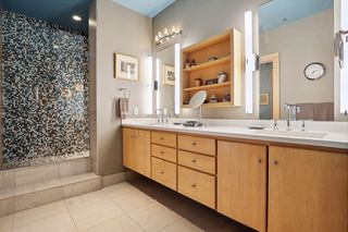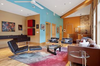 The 2 bedrooms are located down one level with a comfortable family room featuring a beautiful barrel-vaulted ceiling which is original to the building. The master features a huge walk-in closet and spacious master bath with a walk-in shower, double sinks and lots of great lighting. There is also a full bath with a jetted tub near the second bedroom/ office.