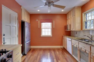 This three bedroom, two bathroom home has an updated kitchen with granite countertops, stainless steel appliances, a garbage disposal, microwave, plentiful maple cabinets, a 5-burner gas range, and an informal dining area adjacent to the formal dining room. The spacious living room has built-in bookshelves on either side of the wood burning fireplace, a curved bay with french doors leading to a small garden terrace and landscaped front yard. A back hall staircase leads to the attached garage and laundry area. Each unit has its own washer and dryer. Additional storage is available.