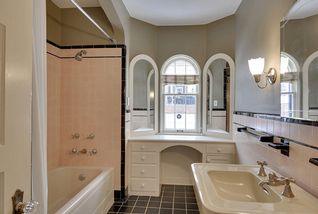 A well-maintained mediterranean-style duplex surrounded by mature trees and beautifully crafted homes. Architectural details include a gracious tiled entry, hardwood floors, crown moulding, arched doorways, divided light windows, and curved bays.