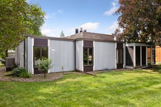 Thoughtfully preserved Mid‑Century Modern by Hammel & Green, tucked into University Grove—an architecturally significant, deed‑restricted enclave of 103 homes. Mature trees frame the home’s sleek, horizontal lines, offering an striking first impression.